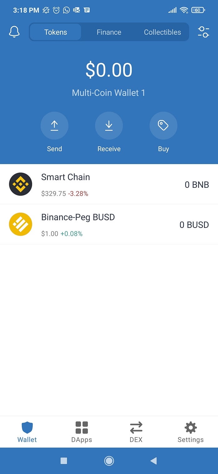 1) Tap on Smart Chain token (be aware that you want to tap on the token with black and yellow icon named Smart Chain, it’s the BEP-20 token you need, the token with yellow and white icon named BNB is BEP-2)